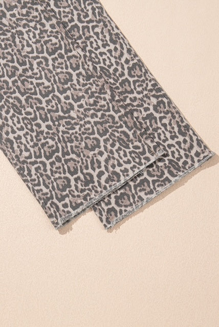 Brown Leopard Frayed Edge Wide Leg High Waist Jeans