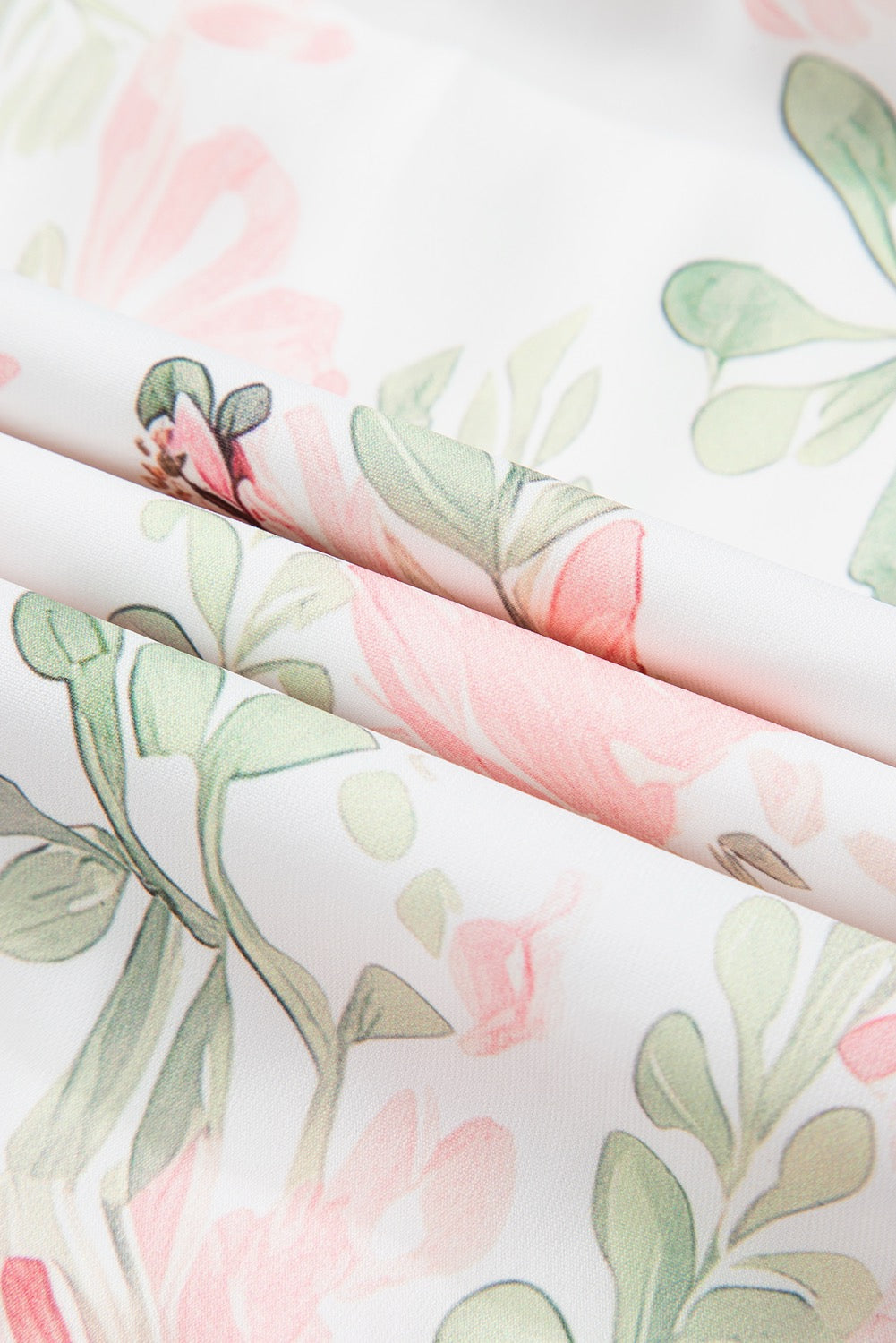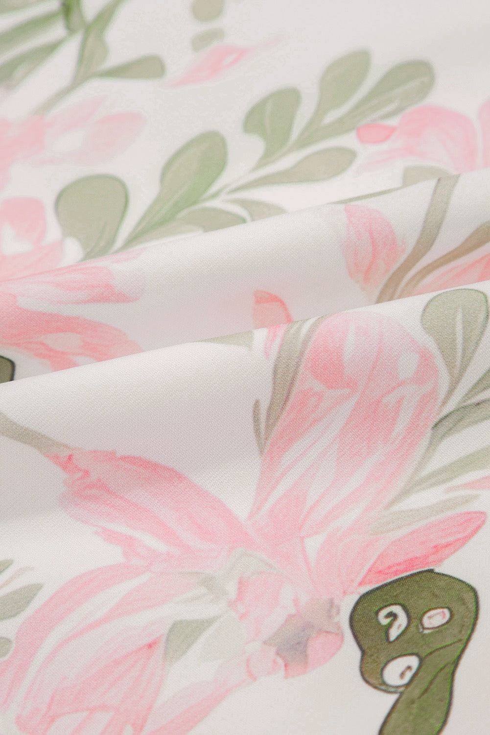 Pink Floral Contrast Edge Layered Short Sleeve Mini Dress